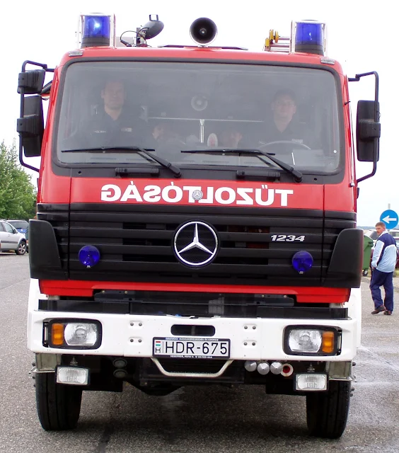 above: NEW! HiRes! Juci'bácsi's NIKON 'Coolpix' A10 photo: 2019. june 02. Sunday 12:00; Veszpremer Fire Fighting Department has got an Alarm action (Flame wasn't there!) to Veszprém, Damjanich János utca - street close to "Zozo" pub - közel a kocsmához - housing state - ltp-re (lakótelepre) A Veszprémi Tűzoltók valós riasztási akciója, tűzeset nem történt, with Rosenbauer - Mercedes TLF-4000. Folowing - Folytatás to backward - hátrébb also Courtesy FREE!