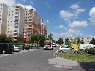 above & below: NEW! HiRes!Folowing - Folytatás Juci'bácsi's NIKON 'Coolpix' A10 photo: 2019. june 02. Sunday 12:00; Veszpremer Fire Fighting Department has got an Alarm action (Flame wasn't there! but strong smoke from kitchen too due bacon toasting. Unfortunately dead an 72. yo. women due smoke poisoning there) to Veszprém, Damjanich János utca - street close to "Zozo" pub - közel a kocsmához - housing state - ltp-re (lakótelepre konyhai erős-füst miatt. Sajnos füstmérgezésben elhunyt egy 72. éves hölgy szalonnasütés miatt) A Veszprémi Tűzoltók valós riasztási akciója, tűzeset nem történt, with Rosenbauer - Mercedes TLF-4000. also Courtesy FREE!