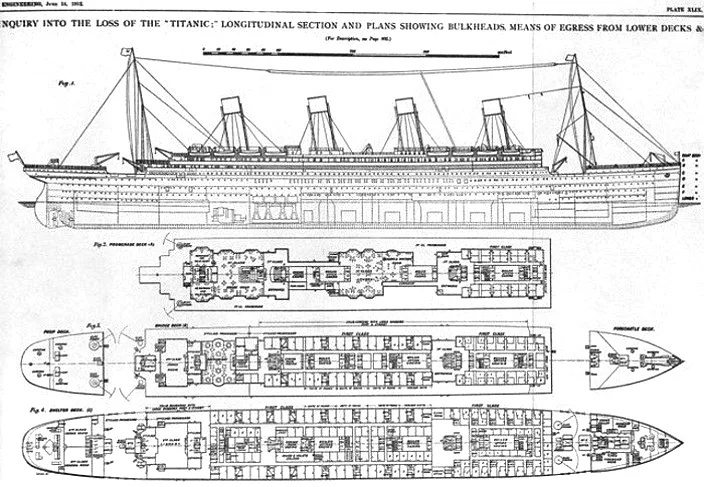 above: NEW! MedRes! Cross-section drawing of Titanic