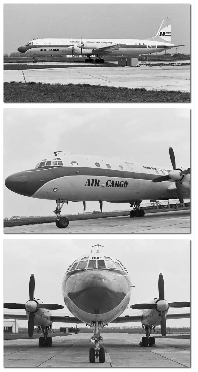 above Two: NEW! NoHigher! IL-18-Malev, Budapest - 'Ferihegy'. civil-aviation-vintage-airline MTVA archive/Pinterest.com
