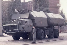 above & below Nine: NEW! MedRes! In Hungary, Tapolca-city former Scud's casarne/barracks 'Scud'-B maquette in action   photo by: ret. 1st Lieutenant. Kása "Árpapa" Árpád ny. fhdgy.-főhadnagy  source: facebook/Kása Árpád