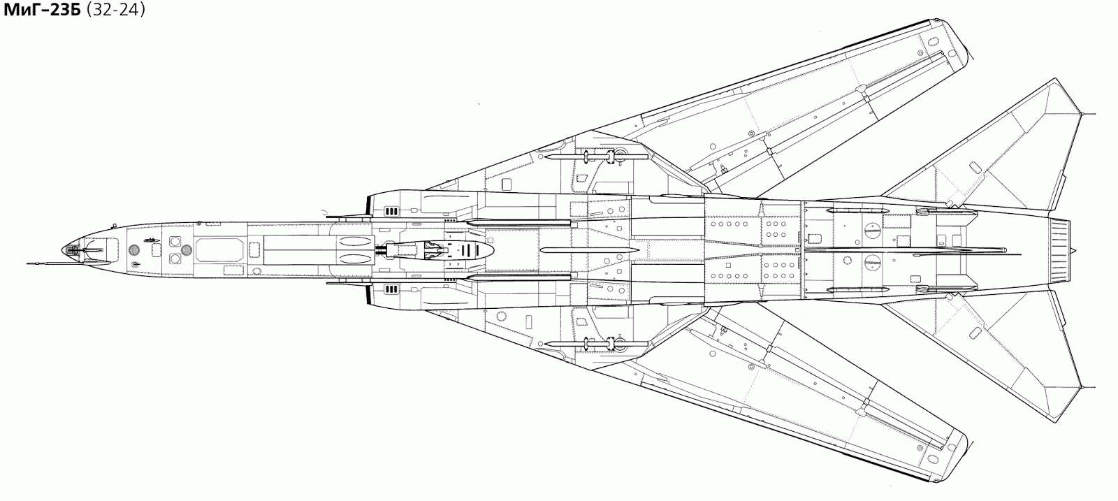 Ru. text: МиГ-23 (по кодификации НАТО: Flogger — «Бичеватель») — советский многоцелевой истребительтретьего поколения с верхним расположением крыла изменяемой стреловидности.