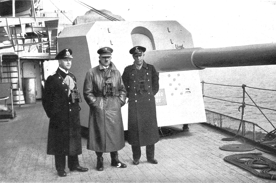 above: NEW! MedRes! Raeder and Hitler aboard the "Deutschland" with the ship's captain, Hermann von Fisch - Raeder és Hitler a "Deutschland" fedélzetén, a hajó kapitányával, Hermann von Fischel-el - Raeder und Hitler an Bord der "Deutschland" mit Schiffskapitän Hermann von Fisch