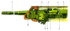 открытым поршневым затвором. Справа рабочее место командира машины,
