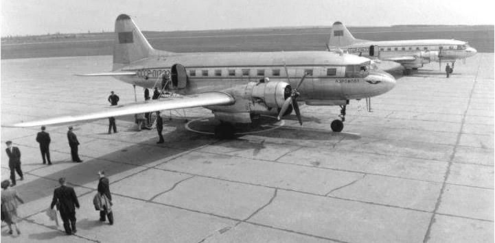 Hu. text: Az Il–14 (olvasd: iL-14, NATO-kódja: Crate) a Szovjetunióban az 1950-es évek elején kifejlesztett kétmotoros, kis hatótávolságú szállító repülőgép. Az Il–12 továbbfejlesztett, javított változata. Polgári és katonai szállítási feladatokra egyaránt alkalmazták. A Szovjetunión kívül Csehszlovákiában, a Német Demokratikus Köztársaságban és Kínában is gyártották. https://hu.wikipedia.org/wiki/Il-14above: MedRes! Hungarian Airlines - MALÉV - Magyar Légiközlekedési Vállalat Il-14 source: facebook: Malév csoport - photo: Ossik János