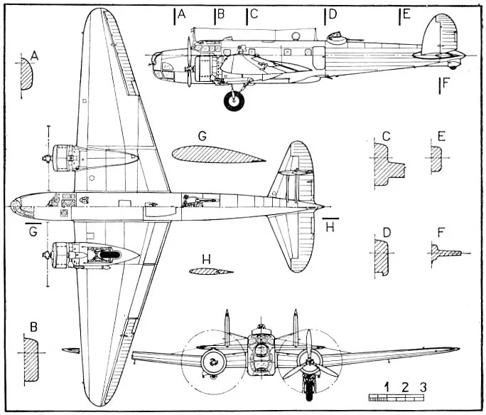 above: NEW! MedRes! Cross section drawing of Savoia Marchetti S.M.79 'Sparviero'